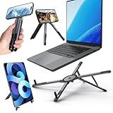 ■8段階角度調整機能と高さアップ脚付の折りたたみ式ノートPCスタンドで…