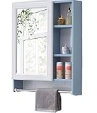| 商品名 | 収納棚 浴室鏡キャビネット 木目調 Tasydi 壁掛け式 鏡付き タオル掛け付き 洗面化粧台周り 収納スペース豊富 現代風デザイン 浴室・洗面所・エントランスに最適 (A,ブルー) |