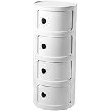 Raineed サイドテーブル ベッド コンポニビリ 多層収納バケット 多機能サイドキャビネット おしゃれ かわいい プラスチック 丸型キャビネット 多機能 2/3/4段 収納ボックス 円柱ラック ナイトテーブル (4層,ホワイト)