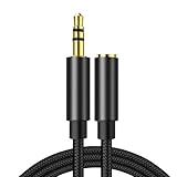 TRkinヘッドホン延長線3.5 mmオーディオライン3極(オス対メス)ナイロン編み2メートルAUXヘッドホンHi-Fi音質多重シールドスマートフォン/Android/-iPhone/PC/テレビ/ディスプレイ/ヘッドホン/PS 4/MP 3/スピーカー対応(ブラック)