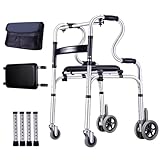 【超軽量アルミ製】【品質保証】 歩行器 折りたたみ 6段階 高さ調節 軽量 座れる キャスター付き 室内 室外 屋外 座席 介護用 高齢者用 アルミ製 立ち上がり補助 耐荷重約100kg 歩行補助器 歩行補助 持ち運び便利 リハビリ