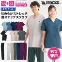 【上下セット】[moz モズ]なめらかストレッチ肩スナップスクラブ(男女兼用) スクラブ 白衣 パンツ ズボン かわいい 医療 ナース服 医療用 レディース メンズ 女性 男性 半袖 看護師 調理 ナース 介護士 アンファミエ